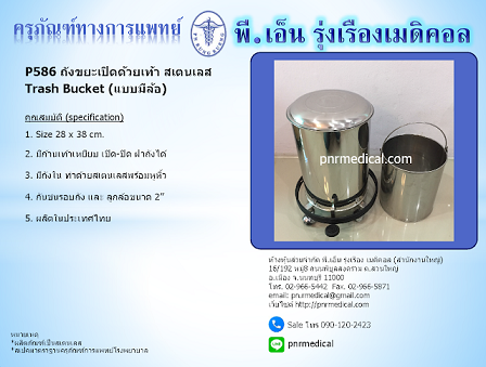 สอบถามทั่วไป -->ถังขยะสเตนเลสทรงกลมใส่ขยะติดเชื้อ เปิดปิดด้วยเท้าเหยียบ มีถังภายใน ขอบกันชนและล้อ
