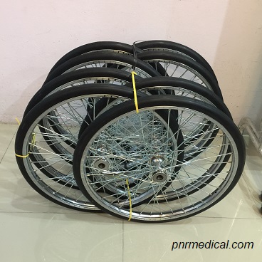 รถเข็นที่ใช้ในสถานพยาบาล รุ่นที่ผลิตในประเทศไทย ส่วนใหญ่จะใช้อะไหล่ล้อรถขนาดดังนี้