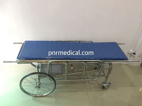 ภาพ รถเข็นเปลหามรุ่นโรงพยาบาลจะใช้วงล้อซี่ลวดแบบดุมใหญ่ เพลาแกนใหญ่20มม.ยางตันสีดขนาด24นิ้ว x 1,3/8นิ้ว