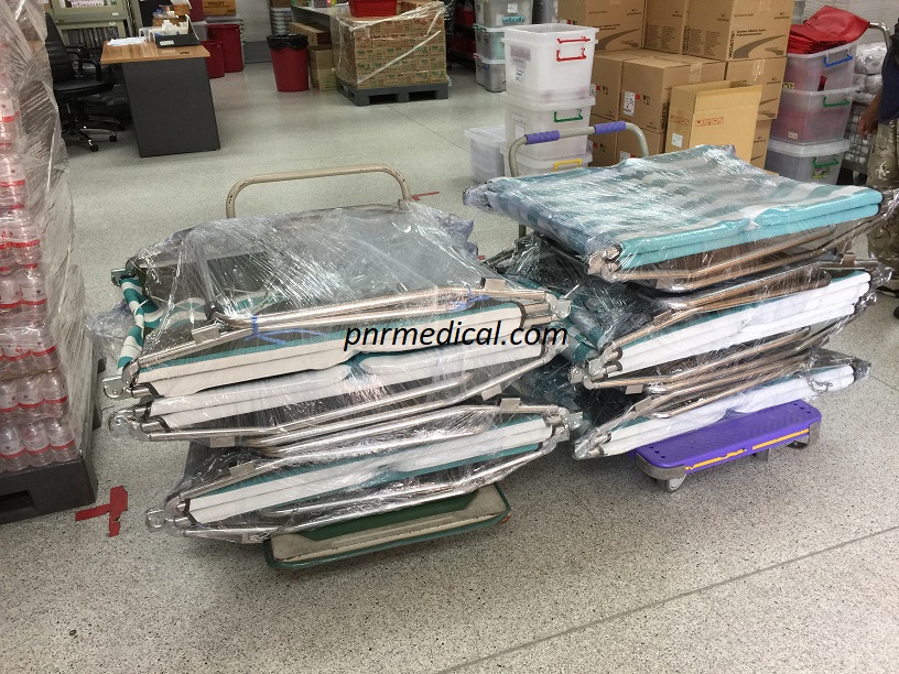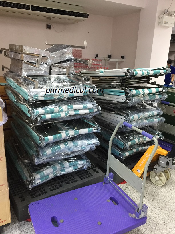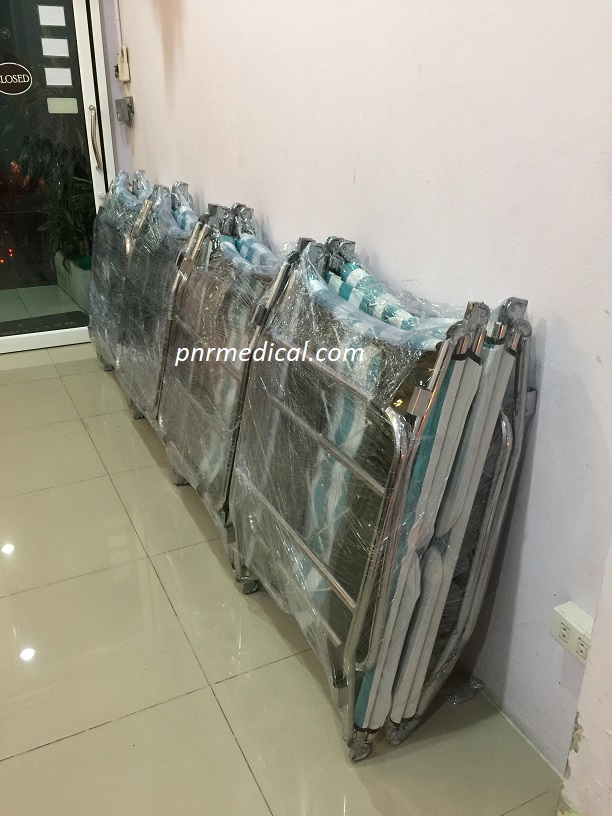 ตัวอย่าง เตียงหน่วยแพทย์เคลื่อนที่ แบบสเตนเลส พับได้ 3 ตอน