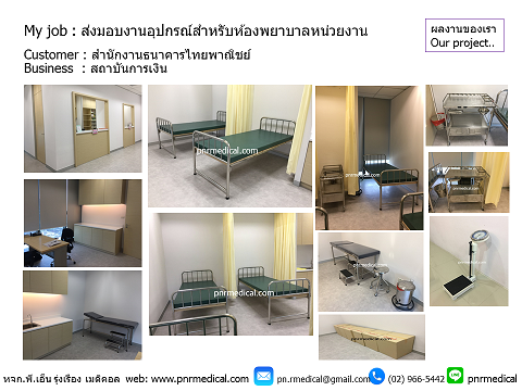 อุปกรณ์ที่ใช้ในห้องพยาบาล สำหรับหน่วยงานที่มีพื้นที่รับรองการนอนพักรักษา เช่น เตียงนอนพัก ,เตียงผู้ป่วยสามัญ ,ฉากบังตา3ตอนสเตนเลส ,ผ้าห่มขนหนู ,ผ้าปูเตียงผู้ป่วย ,ผ้าคลุมเตียง