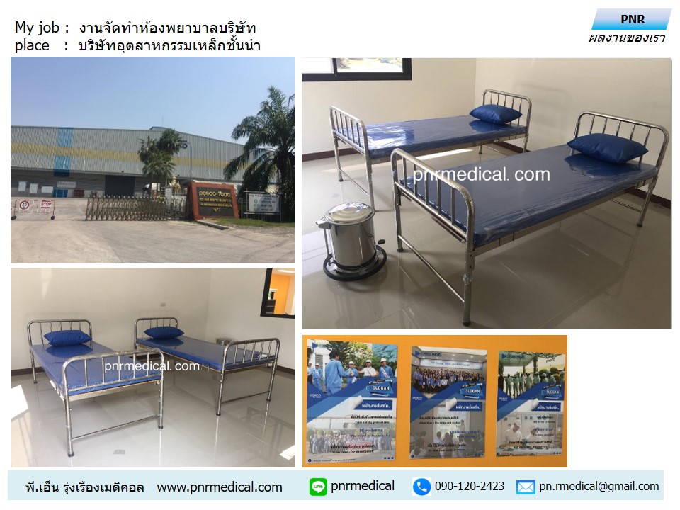 ตัวอย่างห้องพยาบาลบริษัทชั้นนำ ใช้เตียงรุ่น P509Cเตียงนอนพักโครงสเตนเลสพร้อมที่นอนครบชุด เตียงคุณภาพ สวยงามแข็งแรงทนทาน อายุการใช้งานยาวนาน รับประกันโครงสร้าง 2 ปีเต็ม