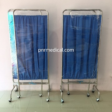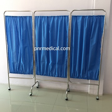 ตัวอย่าง ฉาก3ตอนสเตนเลส มีล้อ ผ้าม่านสีฟ้าเข้ม