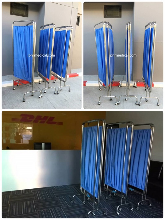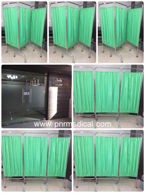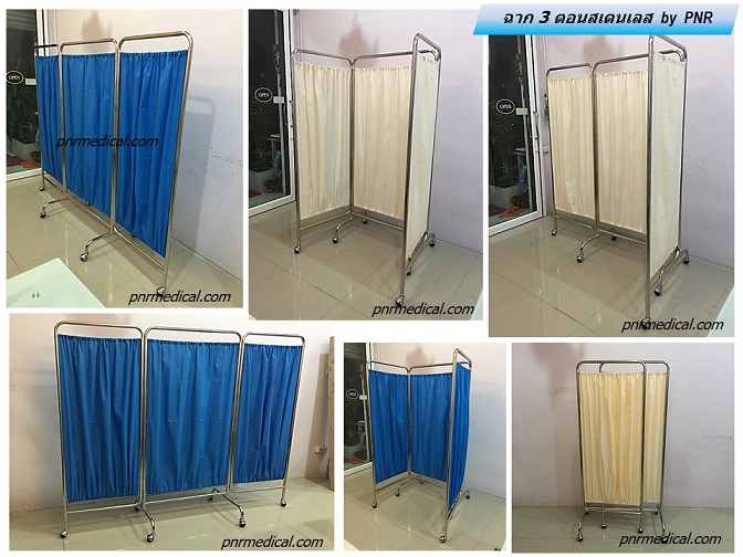 ฉากพับ 3 ตอนสเตนเลส พร้อมผ้าม่าน หรือ ฉากกั้น3ตอน เรามีงานเกรดคุณภาพสำหรับโรงพยาบาล คลีนิค สถาณพยาบาล ค่ะ